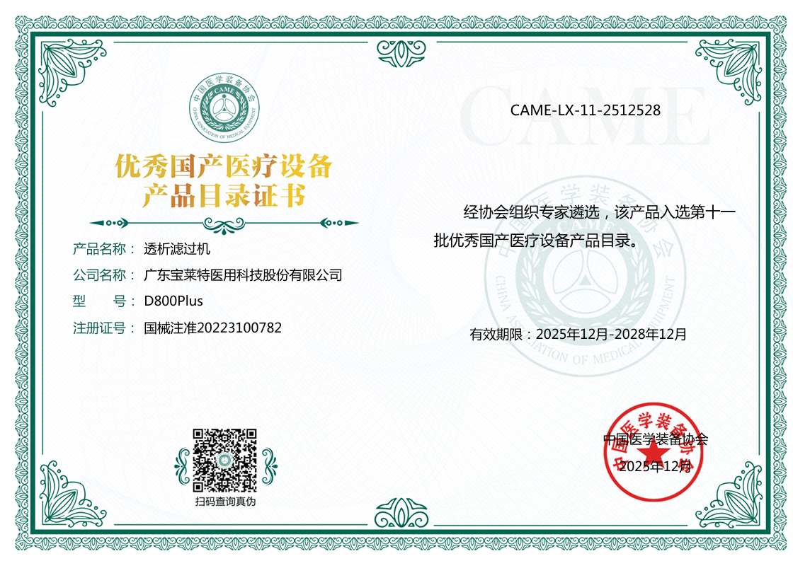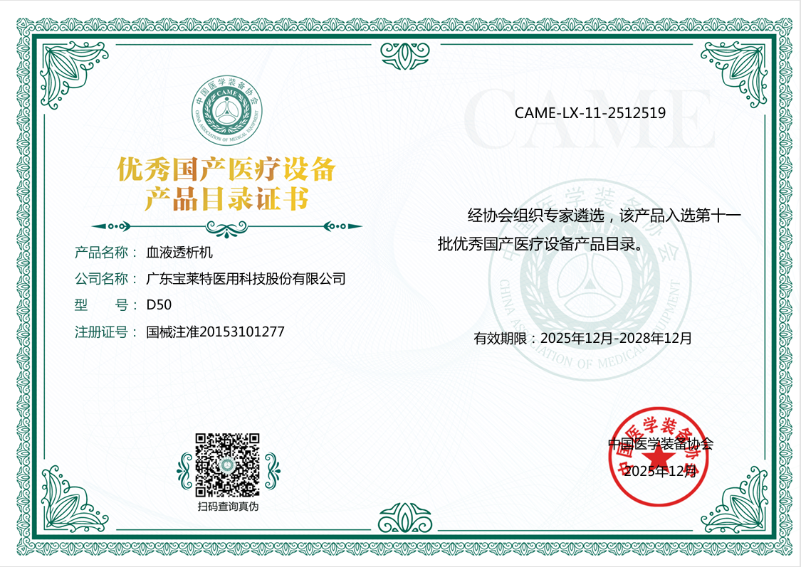载誉而行,此次荣登优秀国产医疗设备目录,对宝莱特而言,意味着我们对推动医疗行业发展、满足临床患者需求,肩负着不容推却的使命与责任。